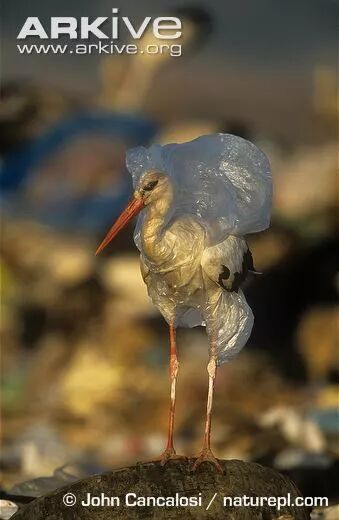 人类对其他生物的影响,可不止这些。图为被塑料袋困住的白鹳。图片:John Cancalosi / naturepl.com
