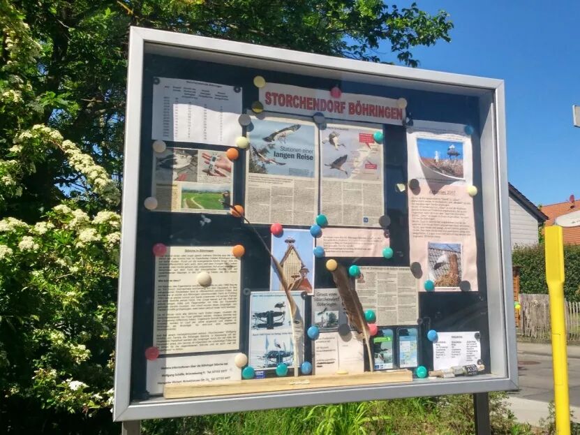 白鹳聚集繁殖的村落常被称为白鹳村。村落内的房屋顶、树顶有很多人工建立或者加固的巢架。相应的宣传展板一应俱全,每个白鹳村通常还有个“白鹳爸爸”或者“白鹳妈妈”。自愿负责观察记录白鹳的物候、繁殖等数据,协助环志等等。