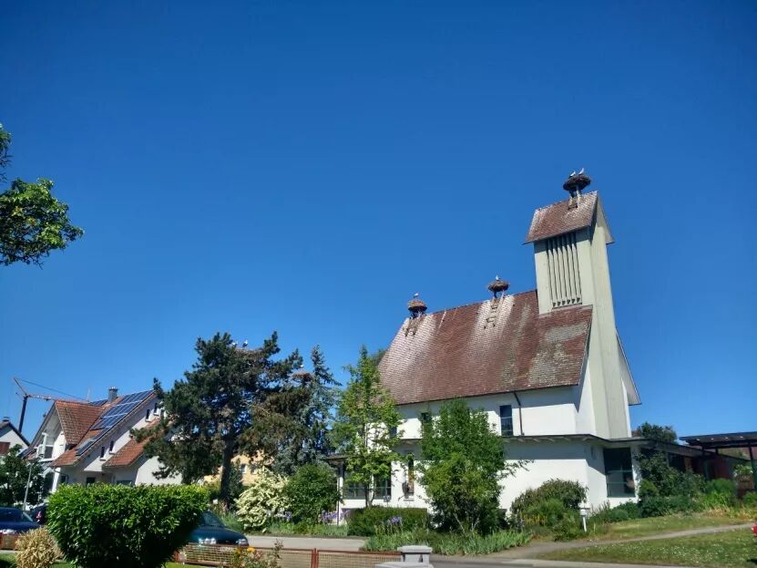 德国某“白鹳村”里筑巢的白鹳,图中有五个白鹳巢,它们都分别在哪里呢?。图片:某个某某