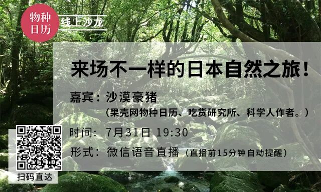 日历娘特意邀请他给大家开一场分享沙龙,为大家展示在这次自然之旅中,他都遇到了什么好看的、好玩儿的。如果你也有去日本的旅行计划,不如来听听这场讲座,为你的旅行计划增添一些灵感!