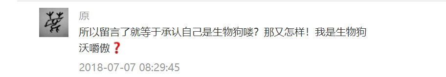 另外,恭喜下面这位骄傲的生物狗,你获得了生物狗专属的Tee一件~快留言告诉日历娘你的收件信息以及衣服尺码吧~还不知道生物狗专属Tee?快戳阅读原文了解。