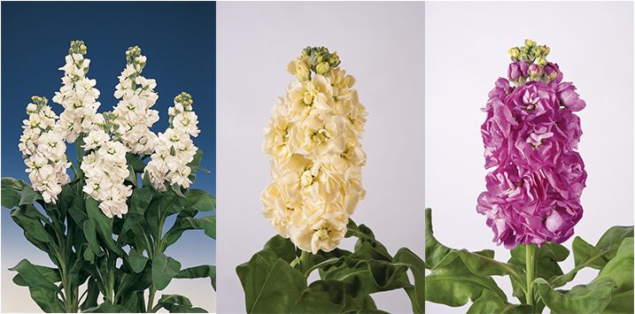 几种不同颜色的重瓣紫罗兰品种。图片:florensis.com