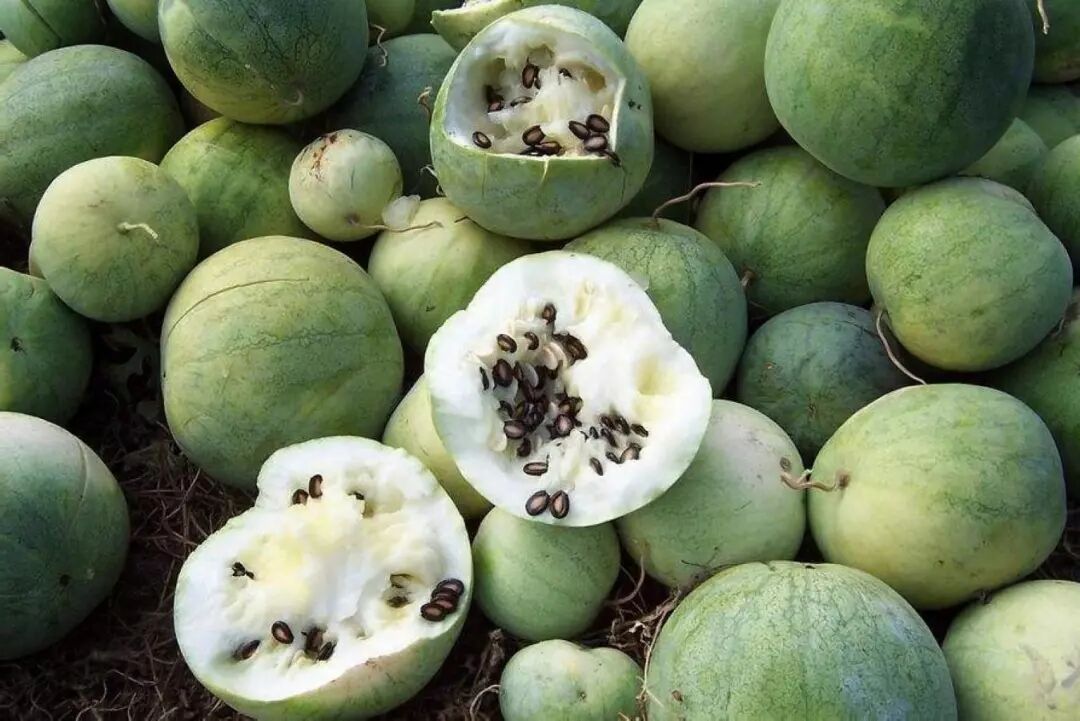 瓜如其名,西瓜正是一种“从西边传入”的瓜。和很多葫芦科植物一样,它的原产地在非洲,具体点是非洲中南部的撒哈拉沙漠地区。如今的撒哈拉沙漠附近依然有西瓜属的几个野生物种分布,但这些亲戚瓤不红、汁不甜,和我们现在吃的西瓜驯化前一样,有着白色的瓜瓤,还带有大量、大颗的种子,并且种子内富含有毒又味苦的葫芦素。这些野生西瓜一般是当地野生动物用来补充水分的,没有人类采摘食用。