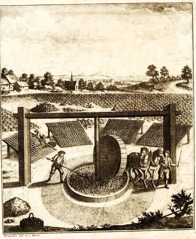 德国中部的菘蓝加工作坊。图片:Daniel Gottfried Schreber(1752) / wiki commons