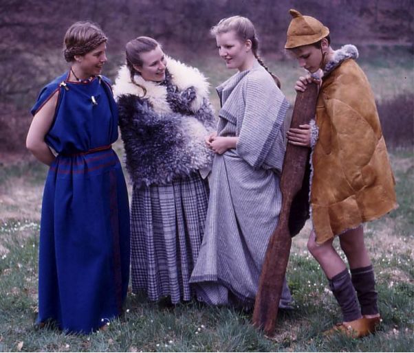 丹麦泥炭沼泽出土的服饰复原图,左一服装的蓝色染料即为菘蓝。图片:tollundman.dk