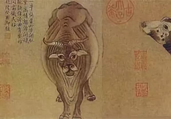 造纸材料和工艺对绘画的影响还远不止生、熟宣这点区别,而是直接决定了不同时期的绘画风格和技巧。隋唐时期画画主要用绢,如果用纸一般也是用麻纸或者桑、楮等纯皮纸,韩滉的《五牛图》就是画在熟桑皮纸上。