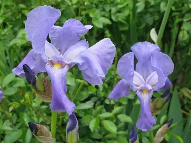 鸢尾花被用于绿地美化的原因除了易于生长之外,最重要的就是颜色艳丽多变了。在花园草地上常见的德国鸢尾(Iris germanica)具有多种绚丽的颜色,盛开时能给平时枯燥的草地增色不少。