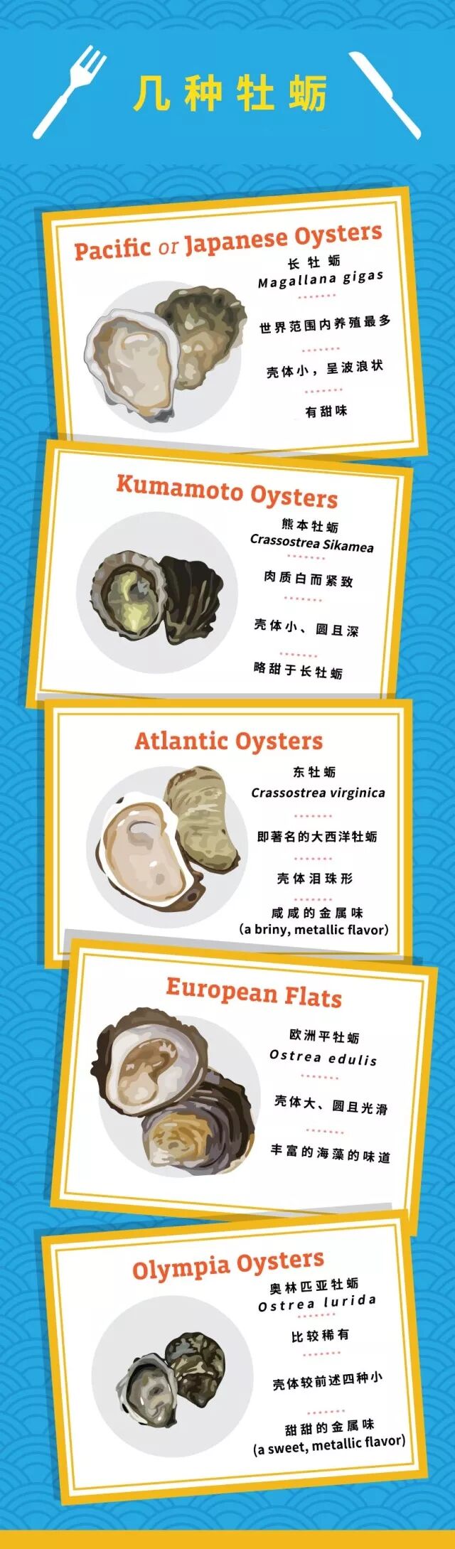 上下滑动查看,世界主要食用牡蛎物种和它们的区别。图片:Kirsten Nunez / fix.com;汉化:物种日历
