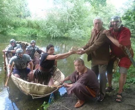 英国科尔切斯特(Colchester)牡蛎节庆典中,人们欢乐地cos罗马士兵接受本地产牡蛎的场景。 图片:Heart Radio