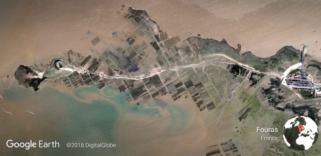 法国富拉(Fouras)近海的牡蛎养殖区。图片:Google Earth