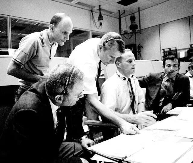 在地面指挥中心,工作人员也一刻不停地关注着失事太空舱的实时动态。图片:NASA
