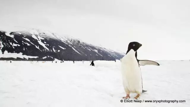 阿德利企鹅,黑白配色与背后的天地融为一体。图片:Ellott Neep