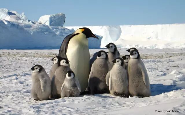 在雪地上的帝企鹅和幼崽们。图片:Yuri Mizin / zin.ru