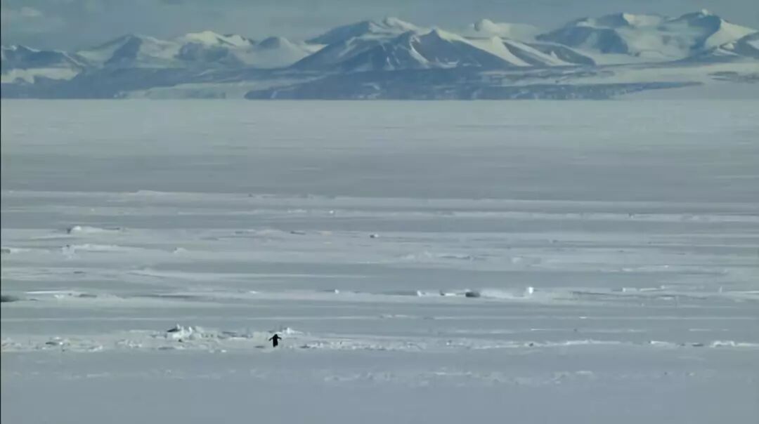 这是一只阿德利企鹅(Pygoscelis adeliae)。画面中的它站在白茫茫的雪原里,身边几只同伴正摇摇晃晃地前往大海。但是它既没有追随同伴的脚步,也没有回到繁殖地。它转过身,蹒跚走向七十公里之外的群山;在那背后,是五千公里的广阔荒原。