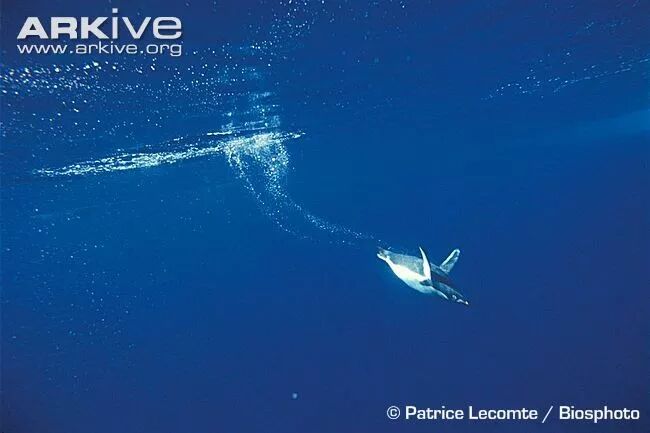大部分企鹅的主色调都是背黑腹白。这种配色其实是海洋生物里非常经典的双向迷彩:从天上往下看,黑色的背侧和暗色的大海融为一体;而从水里向上看,白色的腹部和明亮的水面也难以区分。除了企鹅,虎鲸也是使用这一配色的典型例子。