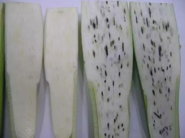 剖开茭白,可以看到黑色的黑粉菌孢子堆。图片:blogspot.com