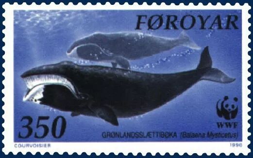 法罗群岛发行的画有弓头鲸的邮票。图片:Bárður Jákupsson / wikimedia