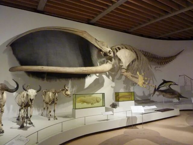 弓头鲸骨架,狭窄的上颚骨上长满了鲸须。图片:bethmoon527 / flickr