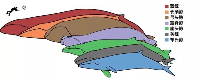大型须鲸的体型对比。图片:The Lord of the Allosaurs / pbs.org;汉化:卢平