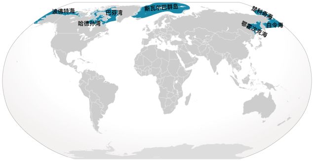 弓头鲸的分布区域。图片:IUCN;汉化:卢平