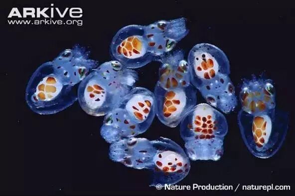 幼体于4~8周后孵出,外形活脱脱迷你版的小章鱼,体长约3毫米,孵出后的幼体如同浮游生物一般在水面漂流数周,然后渐渐沉入水底隐蔽并长大。