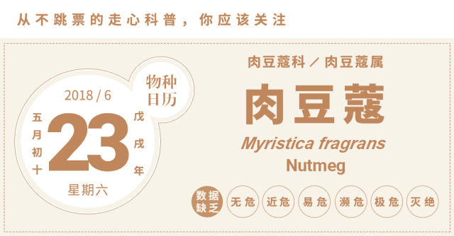 最后在中国植物志中,“豆蔻”这个名字给了小豆蔻和白豆蔻所在的豆蔻属(Amomum)。肉豆蔻这个名字也来源于“豆蔻”,可能因为肉豆蔻味道与豆蔻类似吧。