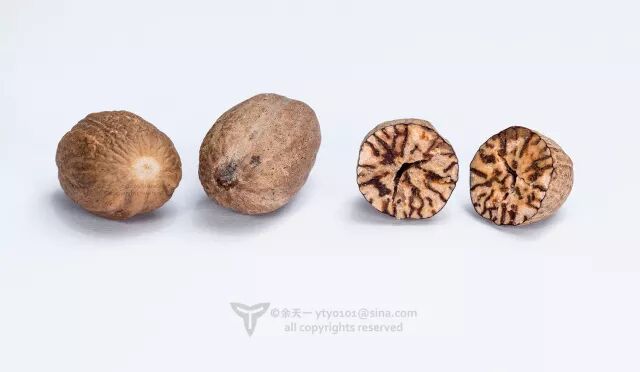 剖开的肉豆蔻种子可以见到类似槟榔的花纹。图片:余天一