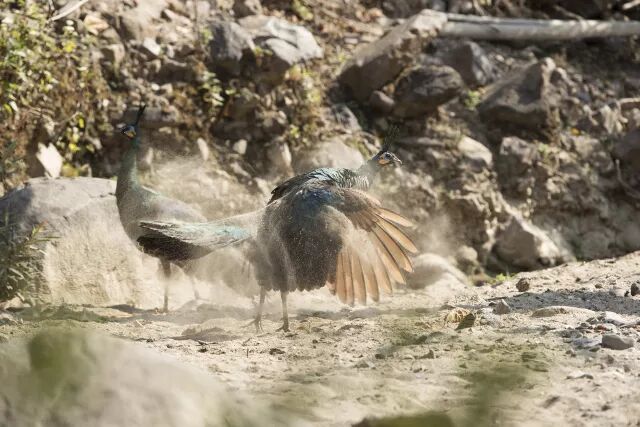 沙浴中的绿孔雀。图片:庄小松 / 野性中国