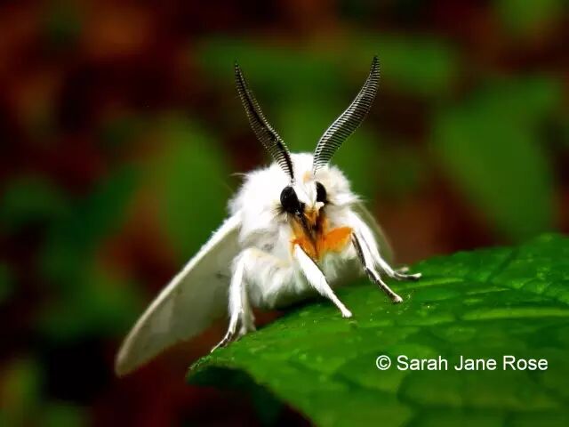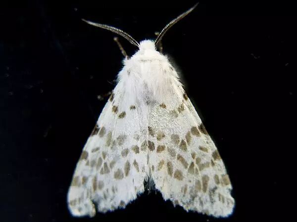 美国白蛾外形毫不起眼,是灯蛾科里最常见的小白蛾子造型,头胸部毛茸茸的,看上去很可爱,前足基节和腿节部位黄色,雌性成虫翅白色,雄性一般有黑斑。幼虫灰黄色,密布灰白色长毛,毛没有毒,但接触皮肤可能致敏。幼虫有红头型和黑头型,红头型仅在北美有分布。
