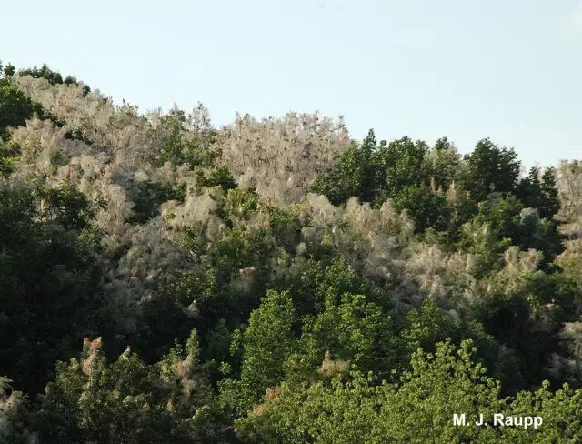 美国白蛾在所寄生的树林布下“天罗地网”。图片:M. J. Raupp / bugoftheweek.com