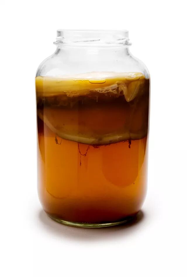 一瓶成熟的“红茶菌”。图片:Mgarten / wiki commons
