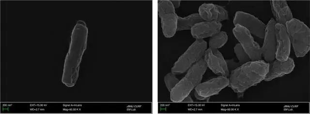 扫描电镜下的一种醋酸杆菌。图片:Nho-Eul Song et al. (2016) Braz. J. Microbiol. 47(2):452-460
