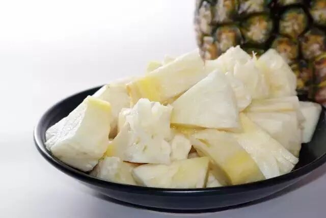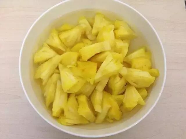 其实,泡盐水的主要作用并不是去除菠萝的酸味儿,而是破坏菠萝蛋白酶。让我们吃菠萝的时候免于挂上香肠嘴。如果把菠萝煮熟、做成糖水菠萝,也能达成类似的目的。