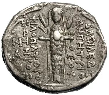 塞琉古帝国时期的叙利亚硬币,铸有阿塔伽提斯人首鱼身的形象。图片:wikimedia.org
