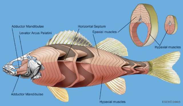 黄鲈(Perca flavescens)的肌肉结构解剖图。图片:animaldiversity.org