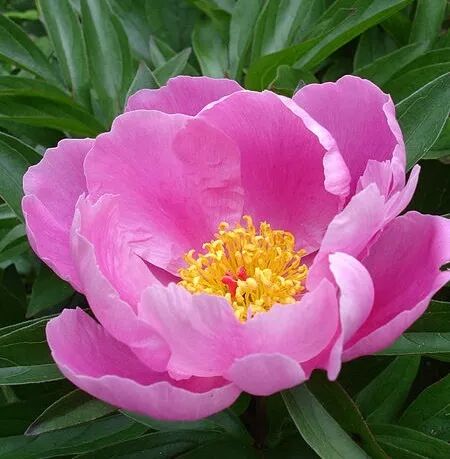 宿根植物在冬季时,地上部分枯萎,但地下根系仍存活,在第二年春季可重新生长,是园林布置中的理想植物,图中的芍药(Paeonia lactiflora)即为一种宿根植物。图片:Ulf Eliasson / wikimedia.org
