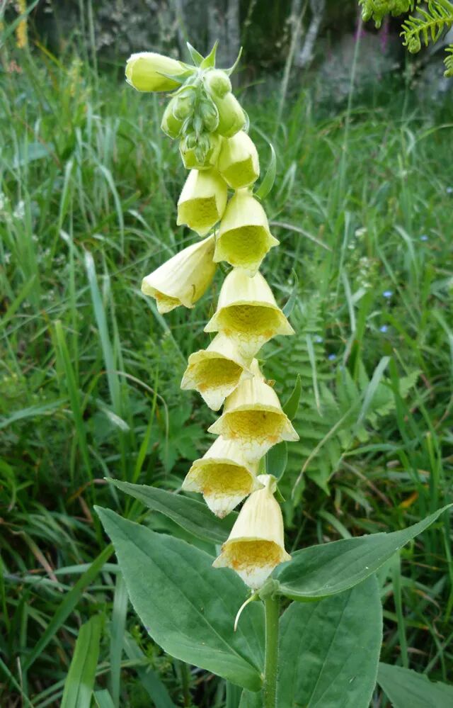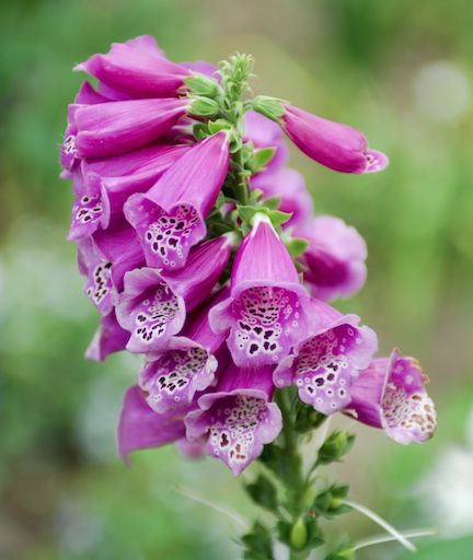 毛地黄,也叫洋地黄,它所在的毛地黄属(Digitalis)有约25个物种,以欧洲、西亚和北非为分布中心。拉丁属名digitalis是手指(finger)的意思,因为该属植物的花朵形似手指,可以像指套一样戴在手指上。在英文中常用foxgloves(狐狸手套)指代该属植物,但为什么偏偏是狐狸的手套,这个暂无很好的解释。不过,想象一下把花朵顶在十指上,应该还蛮有趣的。