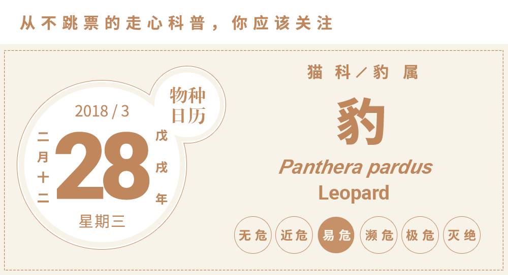 等等,豹属的“属长”差点儿被我们漏掉了啊!相比独霸一方的各位亲戚,豹(Panthera pardus)的存在感似乎有点儿弱?