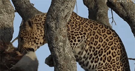 除了大头,豹还拥有短粗的腿和达到体长一半的尾巴,宽阔的肩胛骨上附着着强壮的肌肉,非常有利于爬树时“引体向上”。实际上,豹应该是旧世界大猫中的上树大师。毕竟,能和狮、虎混同一片地盘,没有点儿看家本领是不行的——豹有着“挂高数树”的绝技,为了避免猎物被大家伙们抢走或者被食腐的鬣狗之类偷吃, 它们会把一顿吃不完的大型猎物拖上树挂起来。刚挂好的长颈鹿被滴上树脂就成了长颈鹿琥珀(雾)。
