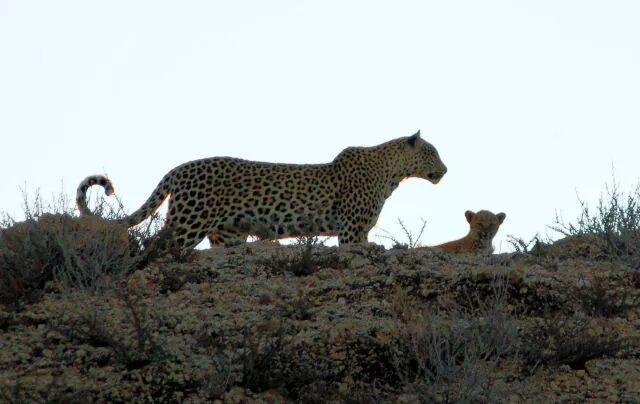南非,豹母子。如果偷猎停止,栖息地过得去,这种大猫或许就有希望。图片:Joachim Huber / wiki commons