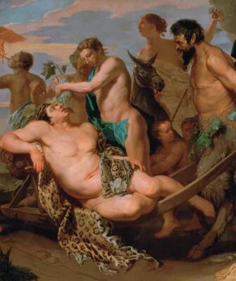 《酒神巴库斯的胜利》(局部),注意酒神所披豹皮的空心圆斑。图片:Michaelina Wautier(17世纪) / wiki commons