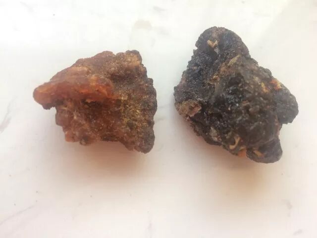 天然没药(左)和胶质没药(右)。图片:沙漠豪猪