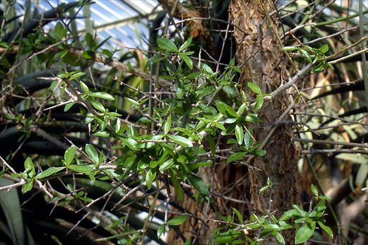 没药树在索马里当地名叫“didin”,因此音译为“地丁树”。它们主要生活在北非和阿拉伯半岛的山坡地,是一种三四米高的小乔木;树皮薄而光滑,浅棕灰色,很容易呈块状剥落;枝条上有很多尖锐的长刺,这些刺属于枝刺,本身是变态的枝;没药树的三出复叶在茎上丛生,中央的一枚小叶比较大,两边的小一些,叶子着生的短枝上还会开出朴素的淡绿色花朵。