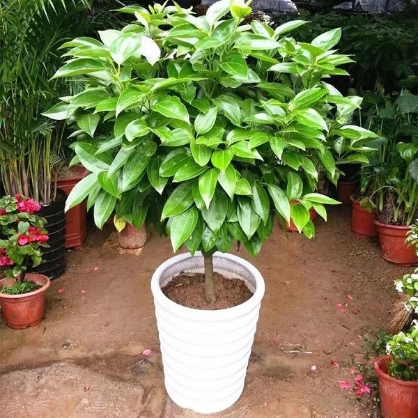 花盆中的兰屿肉桂,有着与樟树一样的离基三出叶脉,但是叶片厚实很多。图片:hua.sh