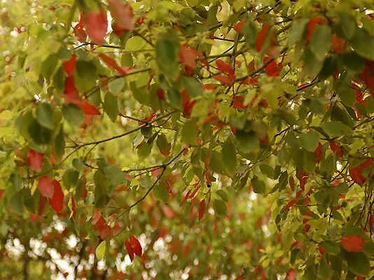 常绿树相对于落叶树,其实并不是一辈子不落叶,而是新叶老叶交替。樟树在春季长出新叶,老叶会慢慢变红、脱落 。此时的樟树红绿相间,但并不显得恶俗,倒有一种提前进入秋天的感觉。