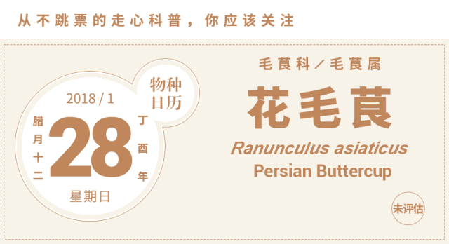 花毛茛的种加词含义虽然是“亚洲的”,英文俗名也是Persian buttercup(波斯毛茛),不过花毛茛在亚洲(西亚)、欧洲(希腊南部岛屿)和非洲(北非)都有分布,而且恰好是人类最古老的几个文明的发源地。
