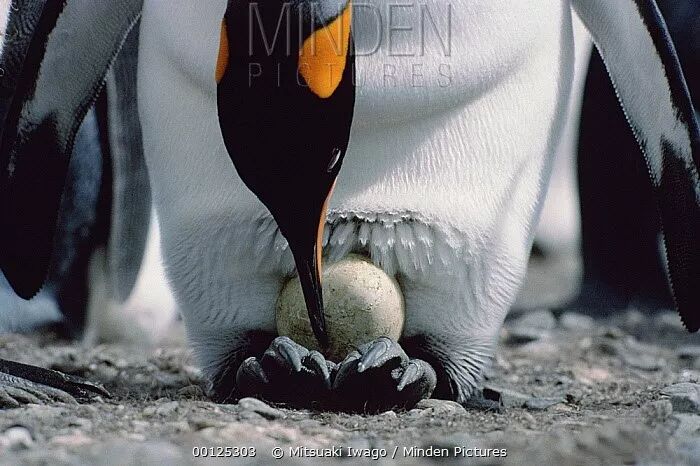 还有更有意思的事呢。王企鹅不筑巢,我想可能是因为太冷了吧。它们孵蛋的时候是把蛋放在脚上,用肚子盖住。