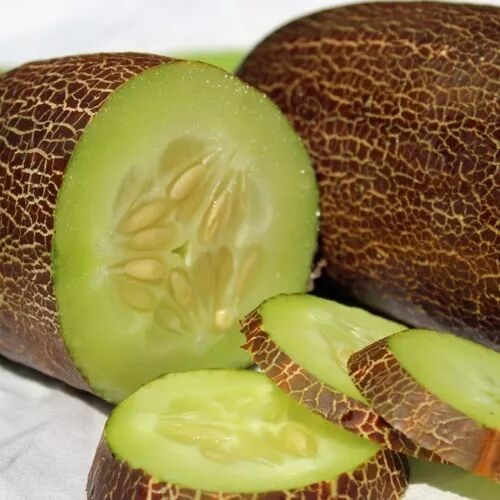 这个主要分布于锡金和尼泊尔的黄瓜变种,在当地是一种常见的主食蔬果。首次用文字记录这种黄瓜的Joseph Hooker爵士就提到了“当地人整天都在大快朵颐这种黄瓜,路边扔着数以千计的、被啃食过的果实残骸”。我国内就很少见到这种外观特殊的黄瓜了,不过它的味道,与普通黄瓜还是没啥差别……