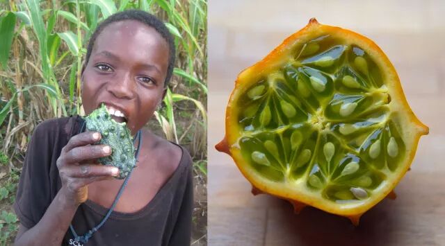 刺角瓜原产于非洲南部,曾是当地居民重要的水分和维生素来源之一。不厚的一层果皮,裹着的化作凝胶状的胎座,这就是刺角瓜的主要食用部分了。