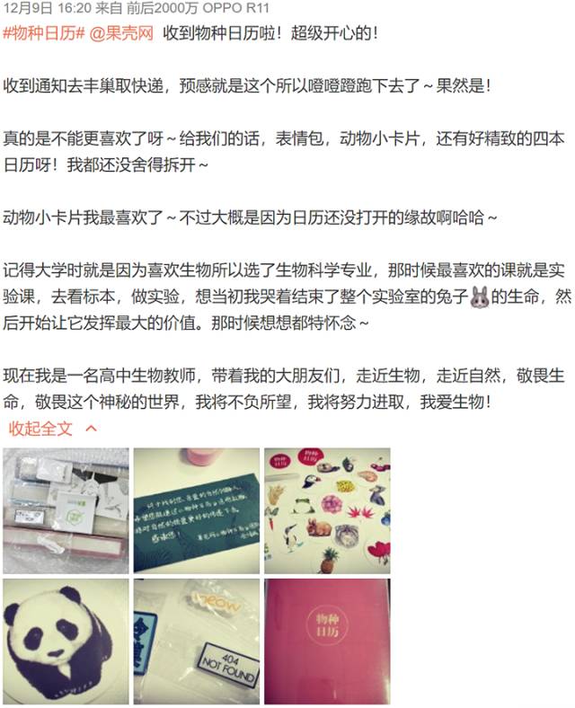 有这样一位申请者,她是一位高中生物老师,几个月前在高考结束时,她把2017年《物种日历》一张张撕下来,作为明信片,写上了祝福的话语,送给了高三毕业的生物班学生们。现在她继续带高三,希望明年还能以这样的方式给同学们送去祝福。